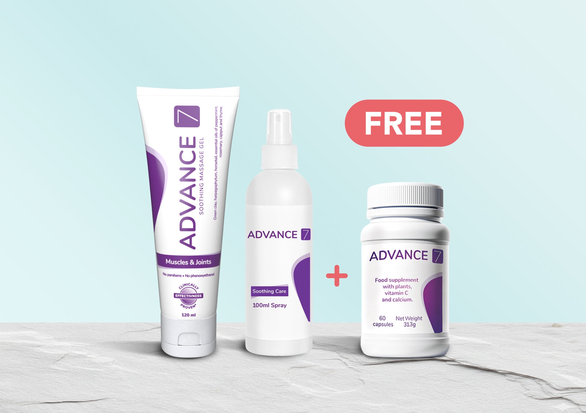 The Total Relief Starter Programme is the ideal way to benefit from the full Advance7 system. It combines the gel, spray, and capsules to support your joints both externally and internally.